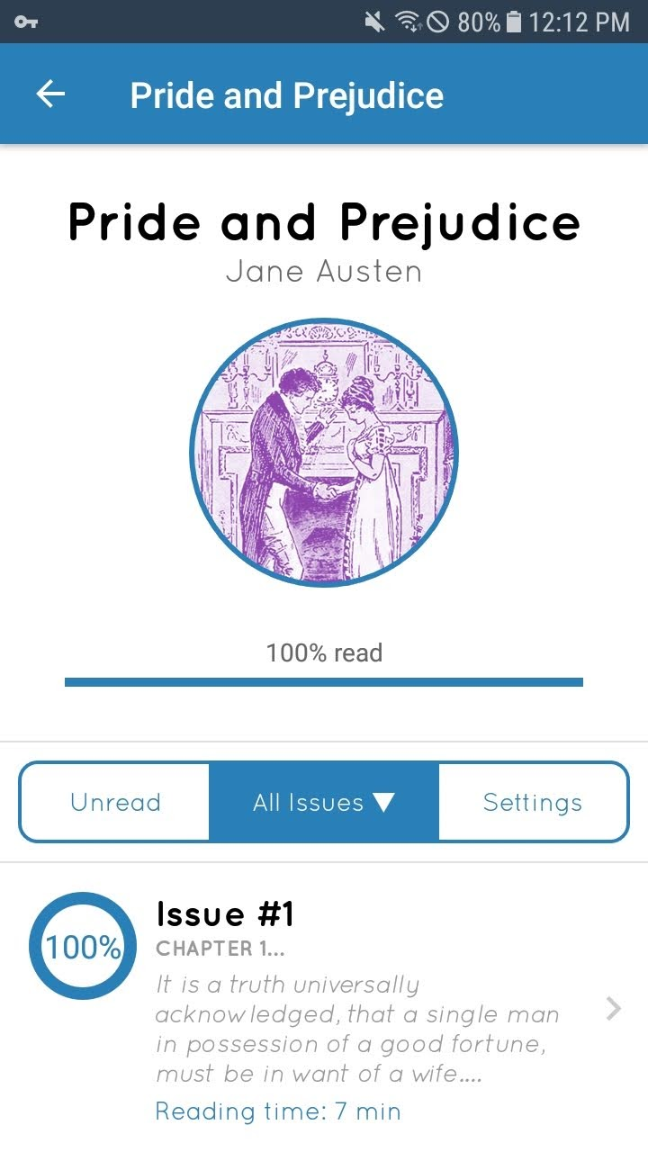 Serialized Delivery Get a new 20 minute issue every day Customizable Reading Edit colors, fonts, and size to perfect your reading experience Read the Classics in Days Read even daunting books in days, right on your iPhone, iPad, or Android device ⁘ Featu
